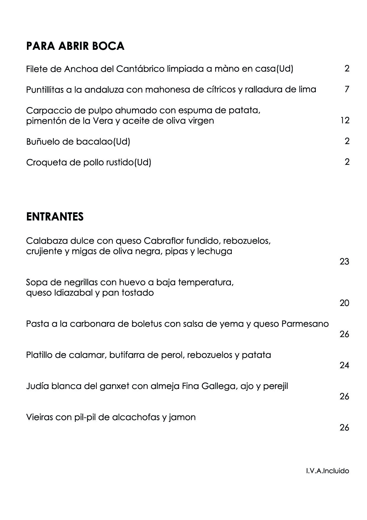 Nuestra carta variará según la temporada en la que nos encontremos CA FR ES NUESTRA CARTA LA BODEGA NUESTROS PLATOS e o n a b c (1) m j k l f g c i d RESERVAS CHEQUE REGALO