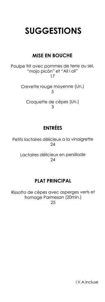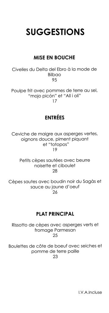Notre menu variera selon la saison dans laquelle nous nous trouvons CA FR ES NOTRE LETTRE CAVE À VIN NOS ASSIETTES e o n a b c (1) m j k l f g c i d RESERVES CHÈQUE CADEAU