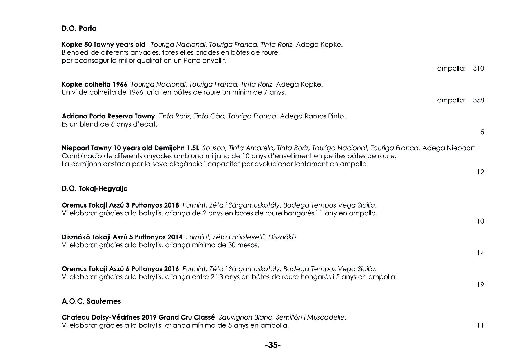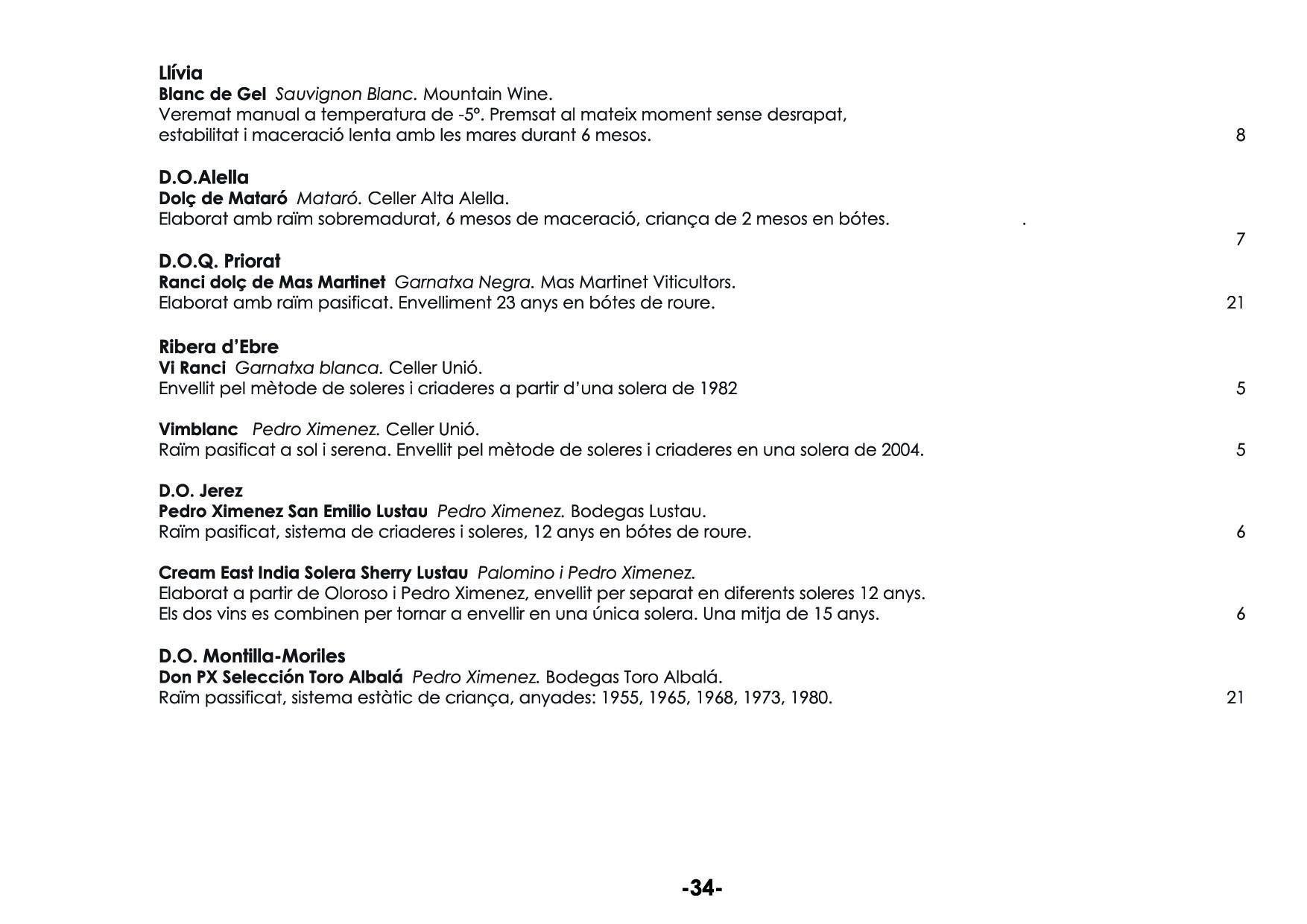 En el nostre celler podreu tastar tota classe de vins, pensats per harmonitzar els vostres àpats. Tenim més de 150 referències. EL NOSTRE CELLER ELS MÉS ATREVITS VINS A COPES VINS ESCUMOSOS VINS BLANCS VINS ROSATS VINS NEGRES VINS DOLÇOS PER LA SOBRETAULA DOLÇOS RESERVES XEC REGAL