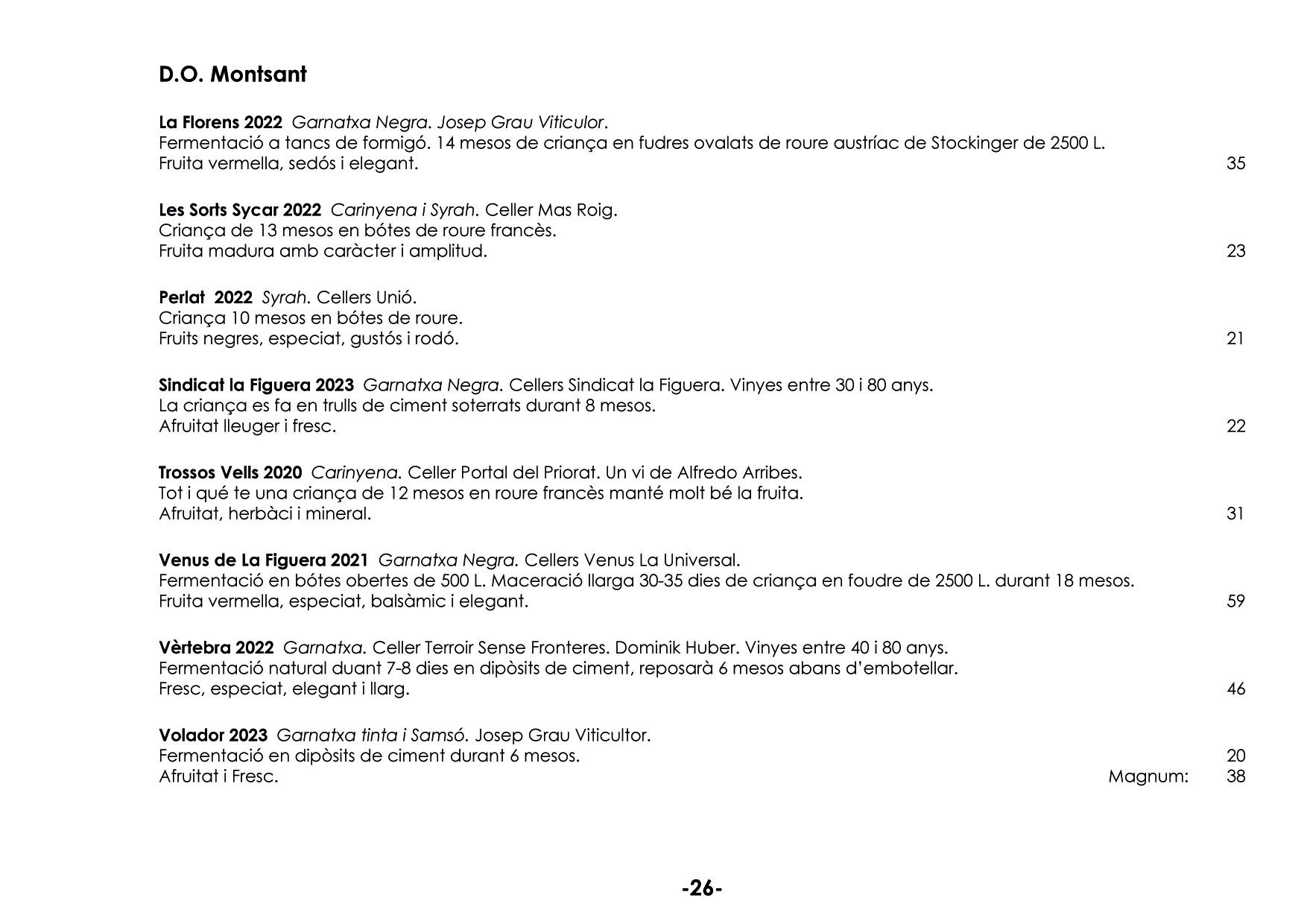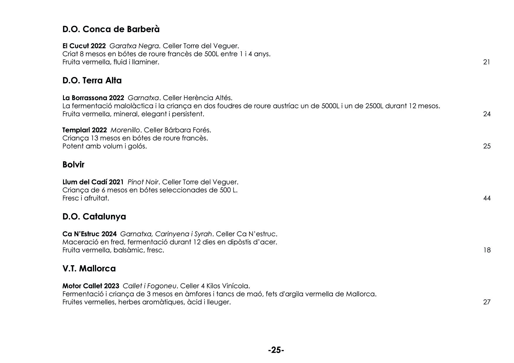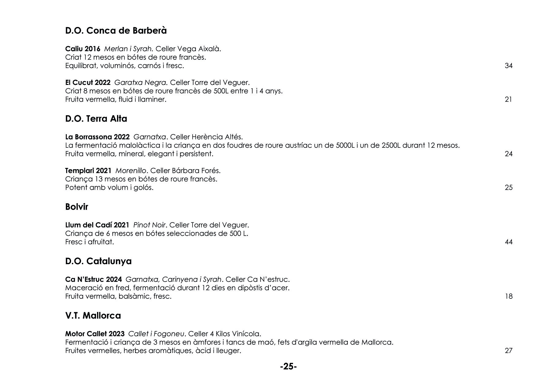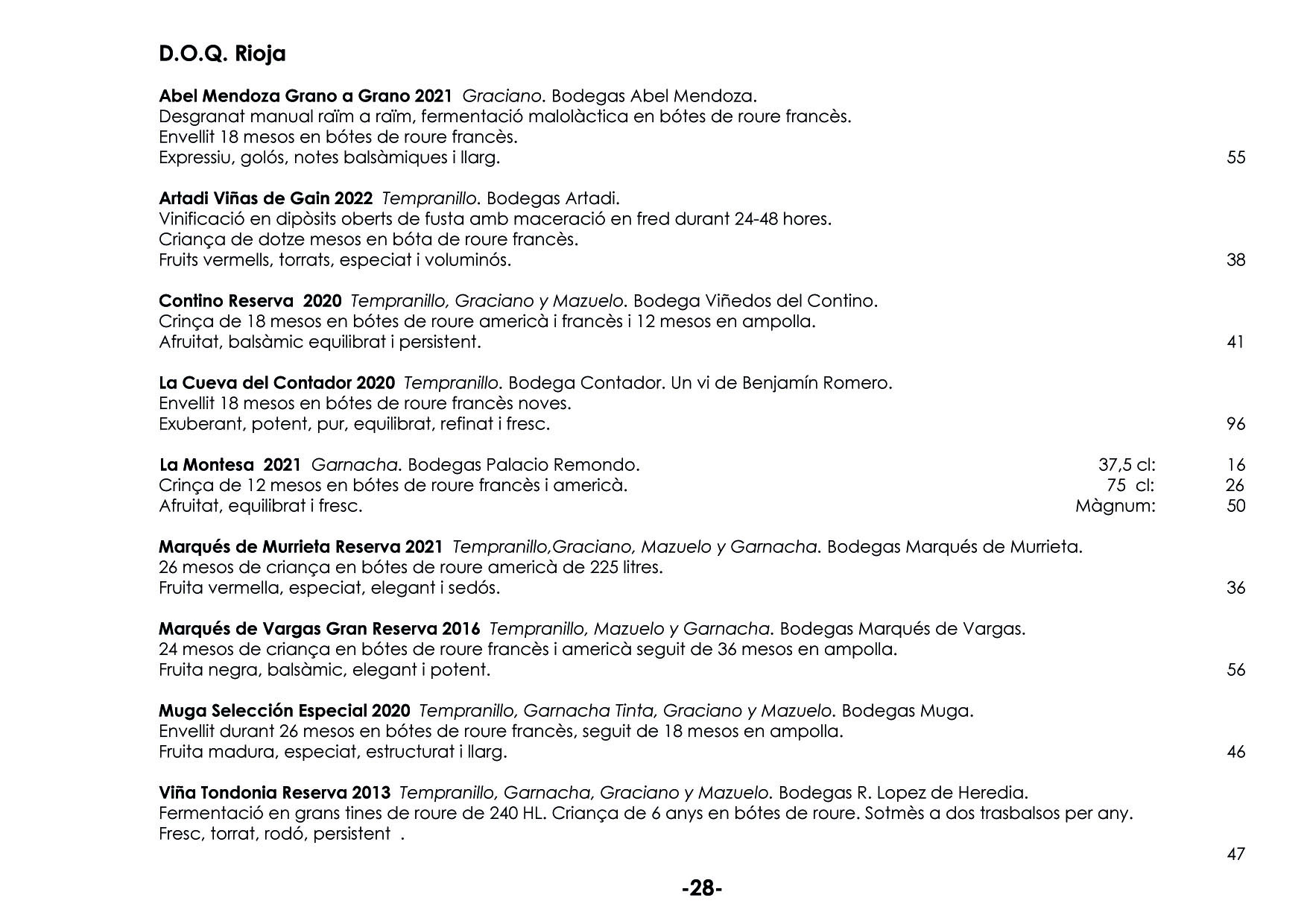 En el nostre celler podreu tastar tota classe de vins, pensats per harmonitzar els vostres àpats. Tenim més de 150 referències. EL NOSTRE CELLER ELS MÉS ATREVITS VINS A COPES VINS ESCUMOSOS VINS BLANCS VINS ROSATS VINS NEGRES VINS DOLÇOS PER LA SOBRETAULA NEGRES RESERVES XEC REGAL